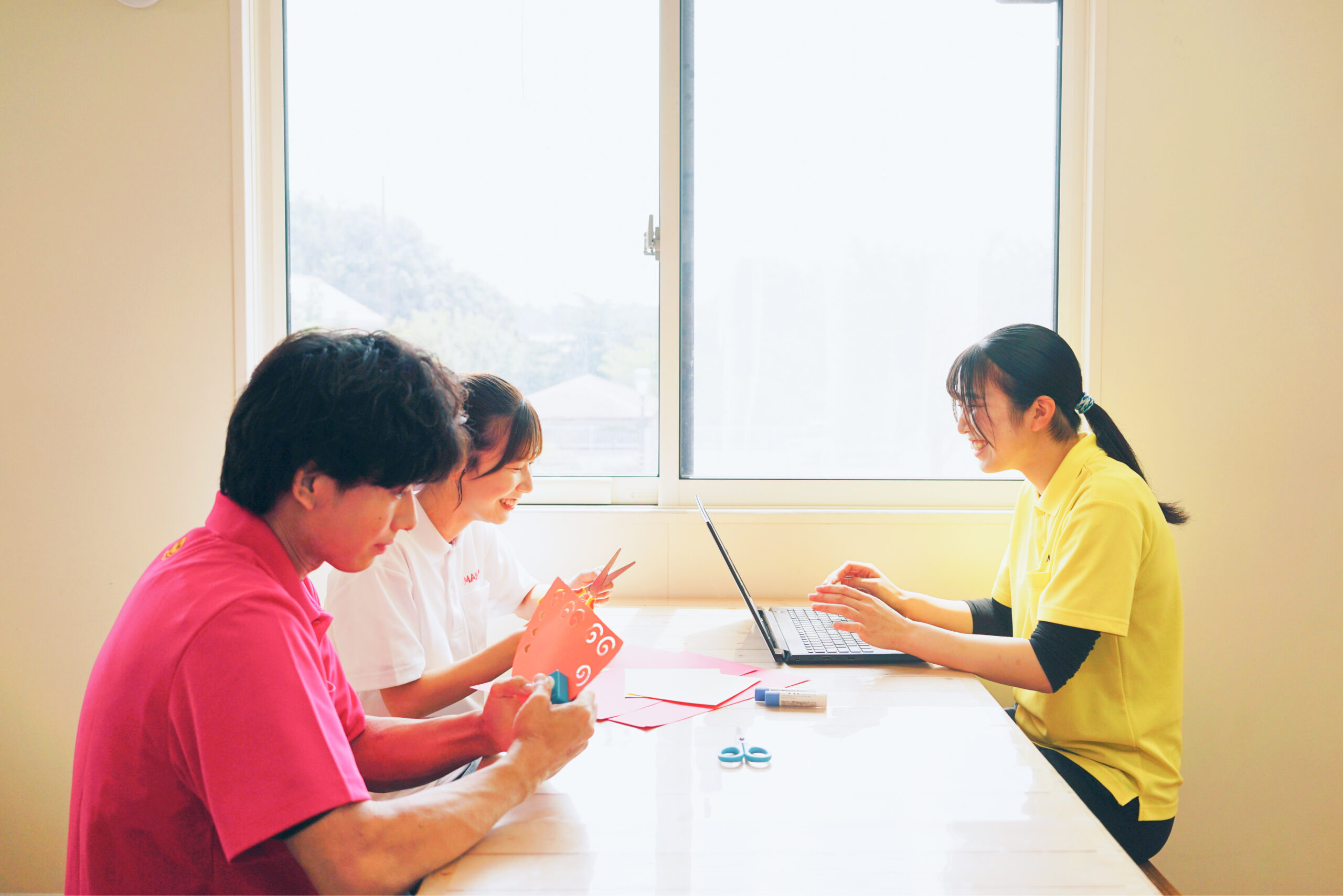 毎日笑顔で、なんでも相談できて、協力し合って前向きに取り組める。